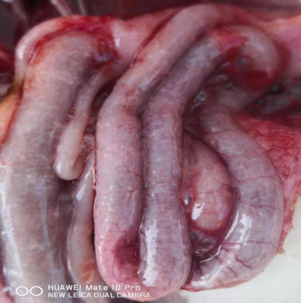 摘要:2019年3月初,江蘇省某27日齡、5000只規模的泰州鵝品種商品代養殖場鵝群發?。好刻焖劳?0多只,有少部分鵝精神不振、縮脖,病鵝行動不變,表現腿病,另外拉白色稀便。解剖死鵝可見:肝臟、脾臟、腸道、密布針尖大的白色壞死點,腎臟腫大也散在白色針尖大的壞死點。個別鵝有痛風病癥和/或大腸桿菌病變。病鵝用抗生素治療無效,初步診斷為呼腸孤病毒感染,同時采集內臟組織送實驗室進行了星狀病毒、鴨瘟病毒、呼腸孤病毒、新呼腸孤病毒的RT-PCR檢測,結果顯示新呼腸孤病毒可以明顯擴增出特異性條帶,其余均為陰性,最終確診為新呼腸孤病毒感染。